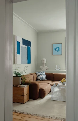 Wolisz kolorowy akcent? Modne kolory ścian w salonie obejmują również barwy inspirowane naturą, tak jak styl urban jungle, który wykorzystuje głębokie odcienie zieleni w połączeniu z ciepłymi brązami. Takie połączenie dodaje przestrzeni wyrazistego charakteru i przytulności. Szukasz inspiracji? Sprawdź wzornik Flugger 80 i nasze najnowsze propozycje kolorystyczne!