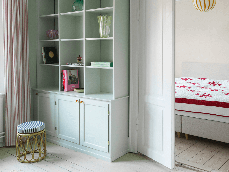 W tym przypadku możesz wykorzystać koncepcję 3:1, czyli trzy ściany pomalowane na kolor szary i jedna ściana różowa. Decydując się na odcienie White Indigo i Flamingo z wzornika Flügger 80, uzyskasz balans pomiędzy spokojną szarością a bardziej wyrazistym różem. Meble off-white będą stanowiły ostatnią część triady i z pewnością sprawdzą się jako uzupełnienie kompozycji.