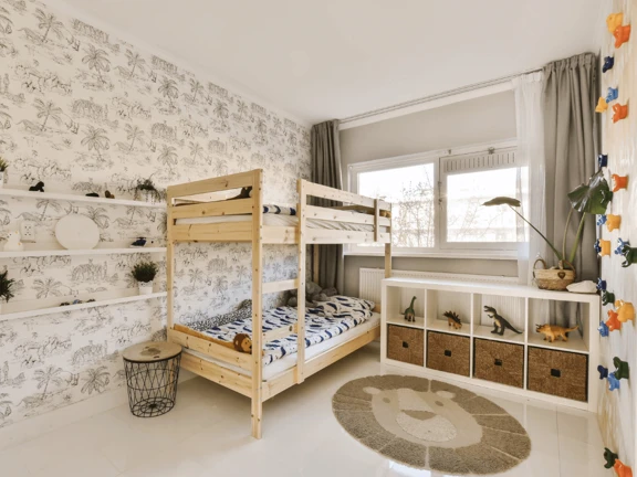 Nadaj pokoju dziecka indywidualny charakter za pomocą fototapety, np. z samochodem Formuły 1 lub słodkim małym pieskiem. To prosty sposób na wprowadzenie do pokoju dziecięcego ulubionych motywów i stworzenie atmosfery, która zachęca do zabawy i marzeń. Fototapeta może stać się centralnym punktem wystroju, wokół którego zbudujesz resztę aranżacji. Wybór odpowiedniej fototapety może także wspierać zainteresowania i pasje dziecka – dla miłośników zwierząt idealne będą motywy fauny, a dla przyszłych astronautów – kosmiczne pejzaże.