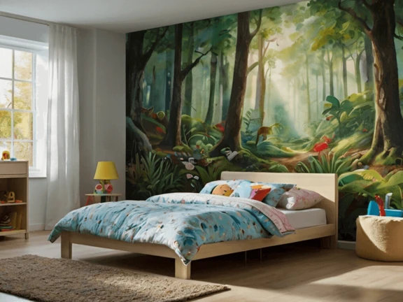 Innym oryginalnym pomysłem na aranżację ściany w pokoju dziecka jest wymalowanie na niej obrazu. W przeciwieństwie do tapetowania malowanie jest prostsze i bardziej elastyczne – motyw można łatwo zmienić, gdy dziecko dorośnie lub zmieni zainteresowania. Dzięki temu ściana może ewoluować razem z dzieckiem, stając się przestrzenią, która inspiruje i cieszy przez lata. Ten rodzaj dekoracji to świetna alternatywa dla ścian do malowania kolorową kredą lub ścian magnetycznych.