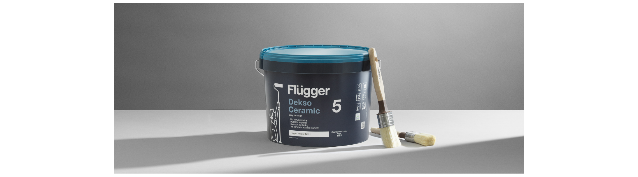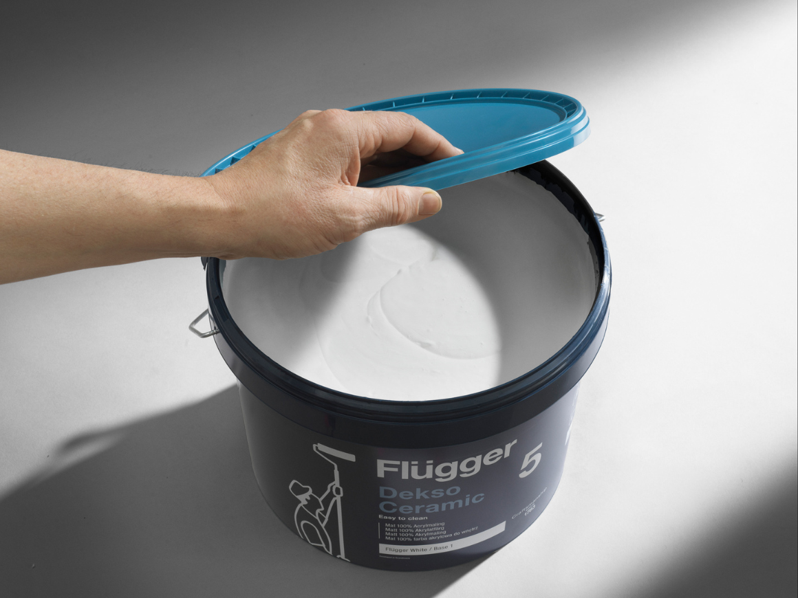 Poznaj nową odsłonę legendy. Dekso 5 Ceramic to najmocniejsza matowa farba w ofercie Flügger, łącząca szlachetny wygląd porcelany z pancerzem odpornym na codzienne wyzwania.