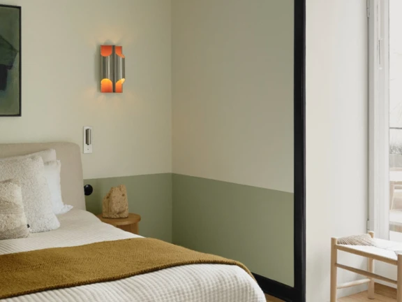W sypialni najlepiej wybierać kolory stonowane, neutralne lub przygaszone – jak beże, szarości, oliwkowe zielenie czy głębokie błękity. W matowym wykończeniu nabierają głębi i spokoju, idealnie dopasowując się do funkcji pomieszczenia.